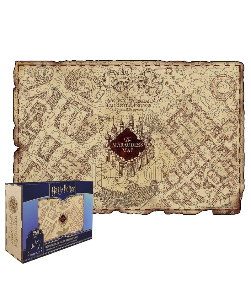 Explore the most secret corridors of Hogwarts with the Marauder's Map wooden jigsaw puzzle, a mystical artefact that knows more about the castle than anyone else. This puzzle brings to life the legendary map once created by James Potter, Sirius Black, Remus Lupin, and Peter Pettigrew.