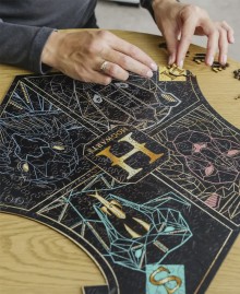 This sophisticated puzzle in a dark design conveys the depth and atmosphere of the legendary school of witchcraft and wizardry. The stylish contrast of clear shapes and deep shades emphasises the heraldry of the four houses – Gryffindor, Slytherin, Hufflepuff and Ravenclaw.