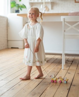 The wooden pull toy “Wandering Ducklings 2” is designed for active and fun walks! Two cute ducklings on wheels go on a journey, and your toddler will become their main guide. Just take a convenient cord (55 cm) – and off to adventures!