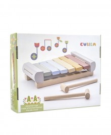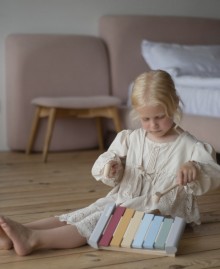 The set includes an xylophone with 6 tones and 2 comfortable sticks to start your musical journey right away.