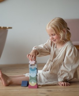 Playing with the pyramid develops motor skills, introduces colours, shapes and geometry, and stimulates logic and social skills. Suitable for children from 18 months, its wooden texture provides a pleasant tactile experience.