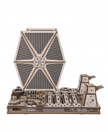This wooden 3D puzzle kit made of plywood and coloured veneer allows you to assemble the legendary Star Wars space fighter with movable laser cannons and an opening cockpit. The set includes a motorised Death Star-style stand with magnetic attachment that allows the TIE Fighter™ to move smoothly from side to side, creating the effect of flight.