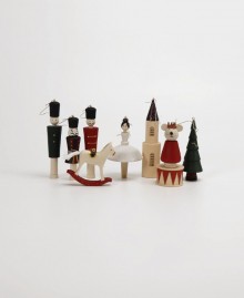 Toy sizes: Ballerina (5*5*8 cm), Nutcracker (2*2*8 cm), Red Soldier (2*2*9.5 cm), Green Soldier (2*2*10 cm), Mouse (2.5*2.5*5 cm), Christmas tree (3*3*8 cm), Horse (6*5.5*1 cm), Drum (3.5*3.5*2 cm), Tower (2.5*2.5*10 cm)