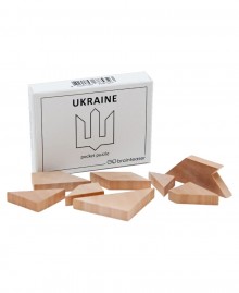 The UKRAINE mini puzzle is a compact wooden logic toy that offers an interesting challenge for the mind and attention span. The universal pocket puzzle format allows you to take it with you anywhere: on a trip, on a break or just during your free time – and spend your time usefully.