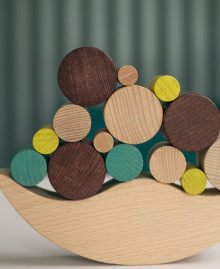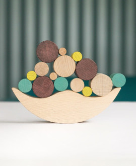 The wooden balance toy "Moon" is a sophisticated exerciser for the mind and hands, combining the calm aesthetics of wood with the excitement of a game of anti-gravity. The main task is to place multi-colored cylinders on a shaky crescent base so that the structure remains stationary. Each move in this game turns into a small study of physics and balance.