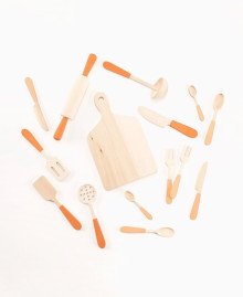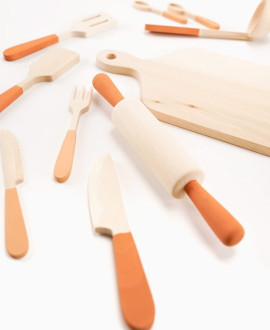 The wooden kitchenware set is an elegant embodiment of adult life in a child's size. The set is designed to turn an ordinary game into an exquisite ritual of cooking. Thanks to its laconic design and natural texture, these utensils become an ideal addition to a children's kitchen, teaching the child the culture of food and hospitality through the aesthetics of natural materials.