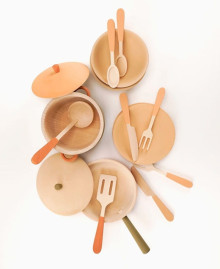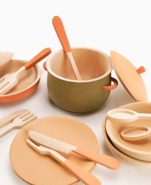 – Social interaction: A complete set for two (plates, spoons, forks, knives) stimulates story-based role-playing games, developing imagination and communication skills.