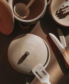 The wooden tableware set "Herbal" is a combination of natural aesthetics and functionality, transforming a children's kitchen into a space for inspired experiments. The deep, calm shade of fresh greenery sets the child up for focused play, helping to create the atmosphere of a cozy family picnic or forest kitchen. Each element of the set is carved from solid linden or birch, which makes the tableware light (only 0.4 kg) and incredibly pleasant to the touch.