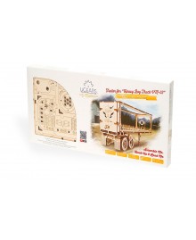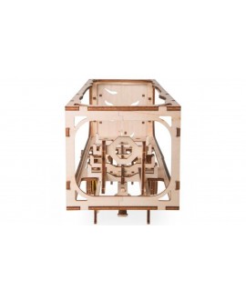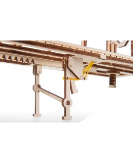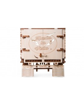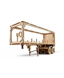 The model is made entirely of wood materials. All parts are already cut and can be easily removed from the board. The semi-trailer is assembled in stages without glue with very detailed color instructions. First, individual blocks are assembled, such as a body, a wheelbase, an automatic coupler, a loader mechanism, which are then transformed into a finished model.