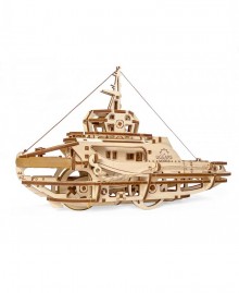 The wooden 3d puzzle "Tug" embodied a classic image, preserving the smooth lines of the sides, a low mast and a wide deck.