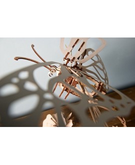 Our butterfly is not just a toy, but a real work of art, all this thanks to the construction from a plywood board, which is made from environmentally friendly wood. Moreover, the butterfly presents a movable sculpture that is activated by a rubber motor, without batteries or other external power sources. He begins to imitate the movements of the flight, and it looks very realistic.
