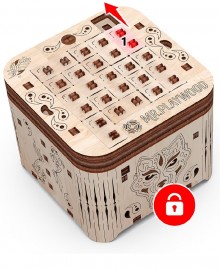 The secret code of the box is made according to the principle of the famous game "Tag game ". The construction set is assembled from 220 high-quality, laser-cut wooden parts that must be disconnected from the tablets and assembled without glue according to the instructions.