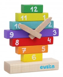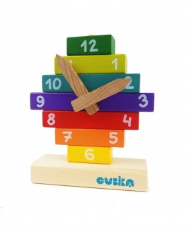 The "Clock" constructor consists of: a base, 7 colored bars with numbers and 2 magnetic hands.