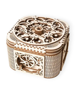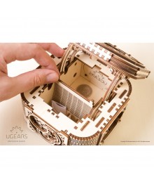 The model is fully equipped with everything necessary for assembly. It is made of high-quality plywood boards tested by European laboratories and is also used in the production of children's furniture. Inside the package you will find plywood boards from which you need to extrude the finished parts and transform them into a finished model. The quality of the workmanship is very high - a laser method is used to cut elements from a plywood board. You don't need any glue or special tools to assemble the "Box with a Secret". A model is created according to step-by-step illustrated instructions with explanations in 10 languages. Methods for joining parts used in mechanisms are inventions and protected by international patents.