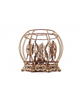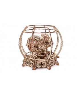 The Mechanical Aquarium has 325 pieces, is rated "Medium" level, and has an estimated assembly time of 6 hours. As you build the wooden aquarium, you will learn about the action and interplay of drive gears and driven gears in gear sets, the function of pendulums, and spring-action mechanisms. You will experience the satisfaction of building something beautiful with your own hands, without the need for glue or special tools. Everything you need for this fun DIY project comes right in the box: high-quality plywood boards with precision laser-cut pieces that you snap out then snap together, the metal spring that powers the mechanism, and of course, a set of detailed, illustrated instructions in 11 languages.