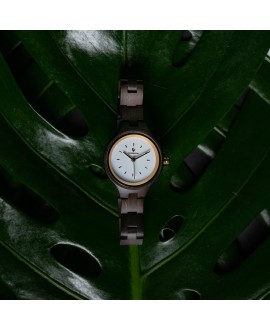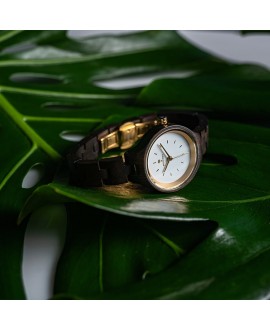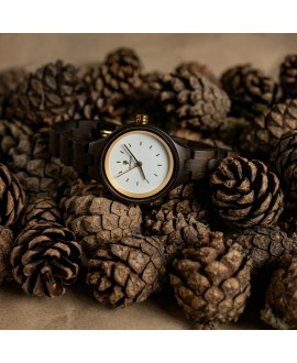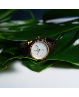 The Dream wooden watch is a sophisticated and stylish piece created for women who confidently express their individuality. The luxurious walnut case is harmoniously combined with a snow-white dial, while the golden bezel and delicate markings add elegance and perfection.