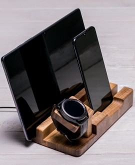 Необычный деревянный органайзер для хранения вашего смартфона, не отключая его от зарядного устройства.