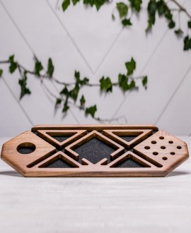 Выполнена из высококачественного материала древесины ореха, пропитанного тунговым маслом - это сочетание дает ей невероятный вид.