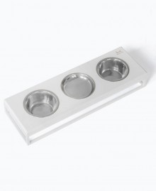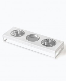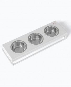 В этой модели предусмотрено сразу три отдельные миски - для сухого корма, влажного рациона и воды. Такой формат идеально подходит для кошек, а также для комфортного кормления нескольких домашних любимцев одновременно.