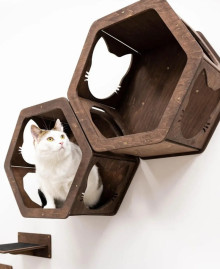 Набор из 2х настенных полок в форме сот – это идеальное сочетание архитектурного стиля и заботы о вашем питомце. Благодаря модульной конструкции вы можете разместить соты рядом, создав общее пространство для отдыха, или на разной высоте, превратив их в элементы активного игрового маршрута. Такая настенная система позволяет коту чувствовать себя настоящим хозяином территории, наблюдая за всем с высоты собственного уютного «улья».