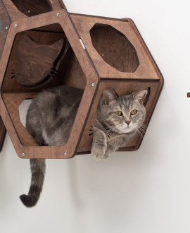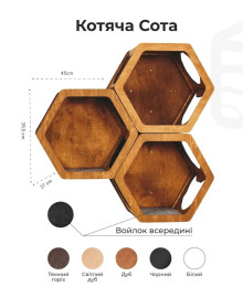 Каждая сота изготовлена из высокопрочной березовой фанеры и способна выдерживать большие нагрузки. Шестигранная форма обеспечивает коту ощущение защищенности со всех сторон, создавая идеальные условия для спокойного сна. Поверхность дерева тщательно отшлифована вручную и покрыта натуральным масловоском, что делает изделие безопасным, приятным на ощупь и устойчивым к ежедневным кошачьим развлечениям.
