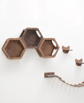 Набор из трех настенных полок в форме сот – это полноценная эко-система для вашего питомца, которая превращает пустую стену в увлекательный вертикальный мир. Благодаря трем отдельным модулям вы получаете безграничные возможности для дизайна: располагайте их в виде классического пчелиного улья, каскадом или разнесите по стене для создания сложного маршрута. Это идеальный выбор для владельцев нескольких кошек или одного очень активного исследователя, которому нужно больше пространства для игр и отдыха.