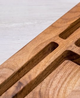 Выполнена из высококачественного материала древесины ореха, пропитанного тунговым маслом - это сочетание дает ей невероятный вид.
