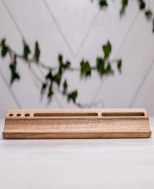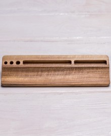 Часто бувають ситуації, коли на робочій поверхні стола зовсім мало місця, так як все зайнято різними дрібницями. Саме для цих цілей компанія EcoWalnut розробила невеликий, але дуже практичний аксесуар під назвою «Компакт». У цього органайзера знайдеться місце для ключів, візиток, ручок та інших дрібних канцтоварів. А також у Вас є можливість розмістити на даній підставці свій телефон (паз довжиною 90 мм) або невеликий планшет (паз довжиною 142 мм), щоб вони завжди були у Вас під рукою. Особливість цього аксесуара полягає в тому, що сам він дуже компактний, що дозволяє зекономити місце на робочому столі.