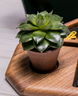 Що може бути більш гармонійним, ніж поєднання деревини і зелені кімнатних рослин? Якщо у Вас немає відповіді, ми рекомендуємо Вам спробувати покористуватися даним органайзером "Суккулент". Ця підставка на робочий стіл просто створена для тих, кому до душі відчуття близькості з природою.