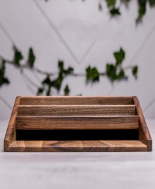 Даний аксесуар виготовлений з натуральної деревини волоського горіха і є відмінним рішенням для організації порядку на робочому або домашньому місці, коли постає питання - куди скласти всі дрібні речі. При постійному використанні до цього органайзера швидко звикаєте і все найнеобхідніше, що є на Вашому столі, кладете автоматично на нього.
