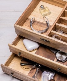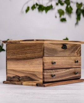 Эта шкатулка с зеркалом из древесины грецкого ореха поможет вам сохранить все ваши украшения в порядке. Она отличается качественным изготовлением, функциональностью и универсальным стилем.