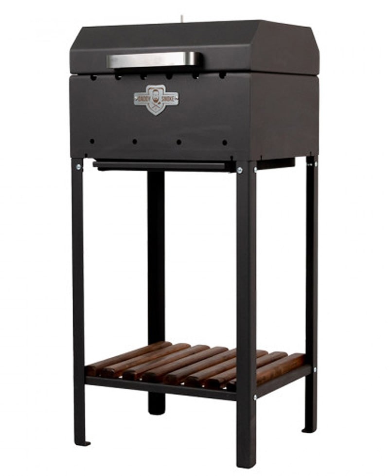 Модель произведена из стали высокого качества и покрыта жаростойкой краской. Внизу расположена полка для хранения инвентаря.
