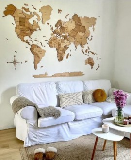 Многослойная карта мира "Голд" – это акцентный настенный декор из натурального дерева, созданный для современных интерьеров с характером. Благодаря сочетанию нескольких слоев карта формирует глубину и объем, а теплые оттенки дерева добавляют пространству уюта и визуальной гармонии. Четкие контуры материков и детализированная гравировка делают карту выразительной даже на расстоянии.
