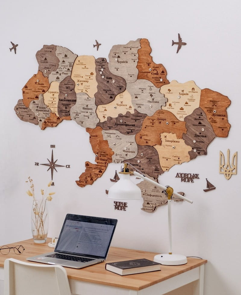 Эта карта станет центральным акцентом интерьера – в гостиной, офисе, учебной комнате или как часть креативного пространства, демонстрирующего вашу любовь к родной стране. Она может использоваться как планер путешествий по Украине, доска для идей или настенный декор, рассказывающий истории регионов.