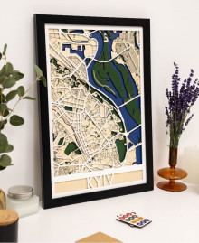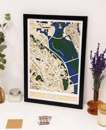 Деревянная картина с планом Киева – это высокотехнологичное сочетание картографической точности и естественной эстетики, превращающее знакомые улицы столицы в стильный элемент интерьера. Благодаря детализированной лазерной гравировке на высококачественной березовой фанере, каждый район, проспект и изгиб Днепра воспроизводятся с невероятной четкостью. Многослойная структура карты создает легкий объем, который придает картине глубину и делает ее выразительным акцентом как в современном офисе, так и в уютной домашней гостиной.