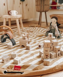 Набор из 26 деревянных кубиков с английским алфавитом от A-Z. Каждый кубик имеет закругленные грани. Они идеального размера для маленьких ручек ребенка.