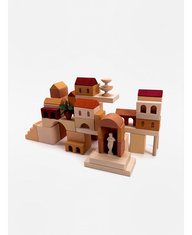 В наборе вы найдете множество разнообразных деталей, которые дают возможность строить без ограничений. Блоки и пластины разных размеров, домики с окнами, лестницы, арки и колонны. Но особое внимание хотим обратить на детали, с помощью которых можно построить итальянский дворик: