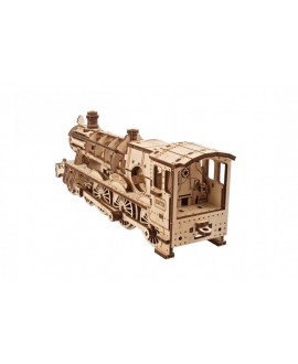 Локомотив представляет собой движущую силу модели с его металлическим пружинным двигателем и шестернями, которые передают вращательную силу на движущиеся колеса. Паровоз заводится с помощью специального ключа (с левой и правой стороны двигателя есть специальные отверстия), но предварительно обязательно переведите переключатель в виде дымовой трубы в положение "Стоп". Когда пружина заведена, удерживайте модель, поворачивая дымовую трубу в положение «Старт», затем отпустите и наблюдайте, как поезд стремительно трогается.