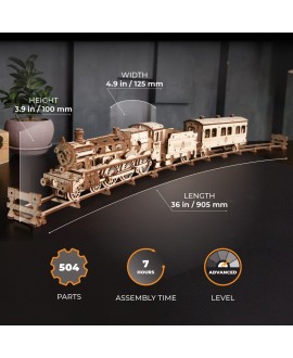 Модель имеет повышенный уровень сложности с ориентировочным временем сборки 7 часов, а подвижный локомотив можно составить примерно за 3 часа. Этот деревянный 3D-конструктор состоит из 504 деталей, предварительно вырезанных лазером в фанерных досках. Просто извлеките детали из досок и соедините их между собой, следуя подробным иллюстрированным инструкциям, доступным на 11 языках. Одним из замечательных преимуществ наших моделей является то, что вам не понадобятся клей или специальные инструменты – все, что нужно для сборки, уже есть в коробке.