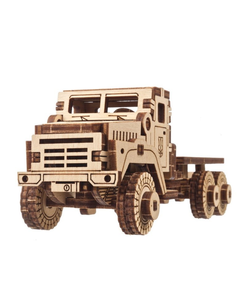 Военный тягач - это деревянный мини-конструктор, воплощающий силу и несломленную духом Украины. Сделанный для бездорожья и экстремальных условий, он надежно справится с работой в снегу, льду и грязи. Прочный тягач успешно буксирует артиллерию, перевозит личный состав, переносит понтонный мост, или вывозит мусор.
