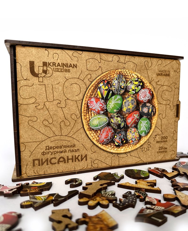 Деревянный пазл "Писанки" - это увлекательная головоломка, которая открывает перед вами красоту украинских пасхальных писанок. Орнаменты на пазле представляют традиции писанкарства разных регионов Украины, демонстрируя богатство и многообразие национальной культуры.