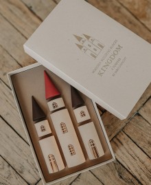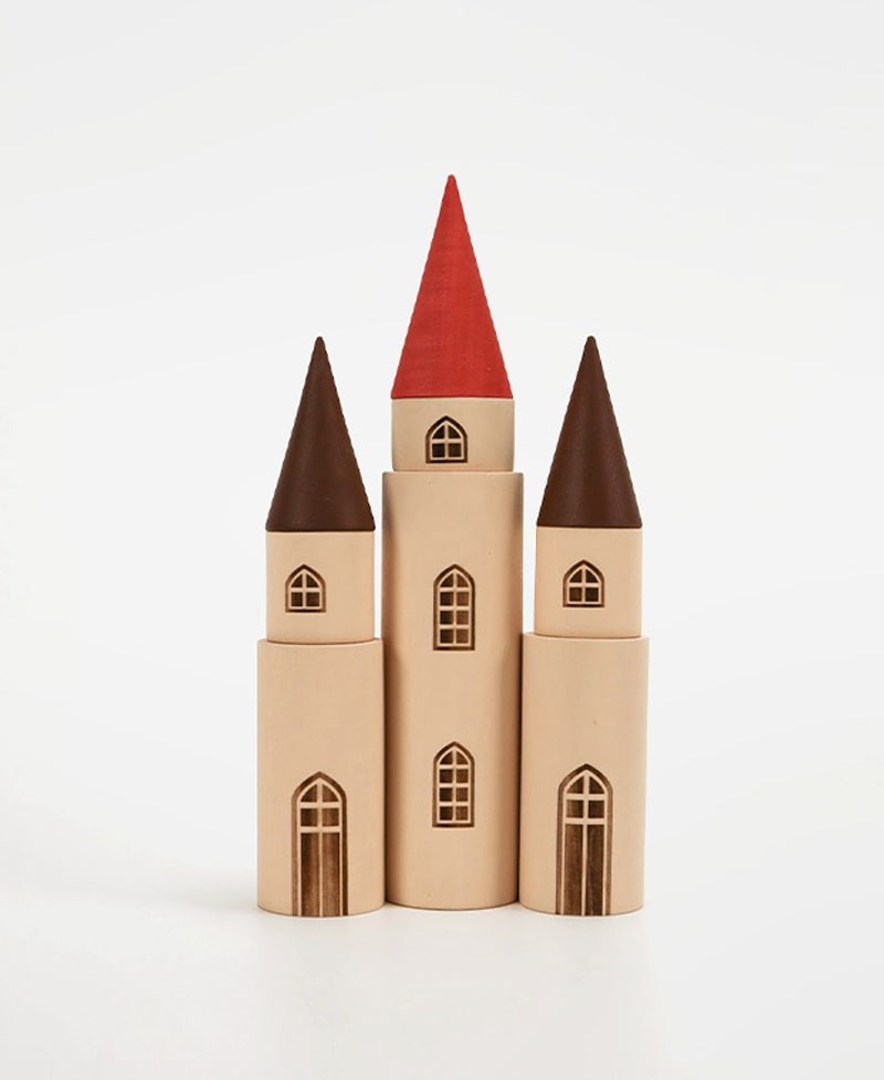 Этот набор содержит 6 цилиндров разных размеров и 3 конуса, идеальных для создания волшебного замка. Каждый цилиндр украшен выгравированными окнами или дверью, а конусы представлены в двух размерах: один больший и два меньших. Все детали легко комбинируются, открывая безграничные возможности для творчества.
