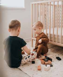Все детали выполнены в приглушенных природных оттенках, которые расширяют представление ребенка о цветах и ассоциации. Конструктор изготовлен из дерева (липа или береза), покрыт безопасной краской и лаком на водной основе, что подчеркивает текстуру дерева.