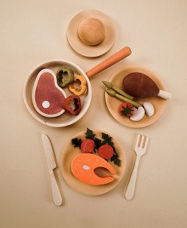 Деревянный набор "Ужин" станет любимой игрушкой вашего ребенка! Он вдохновляет на творческие игры: создание меню, ролевые игры в кафе или приготовления блюд для любимых игрушек.