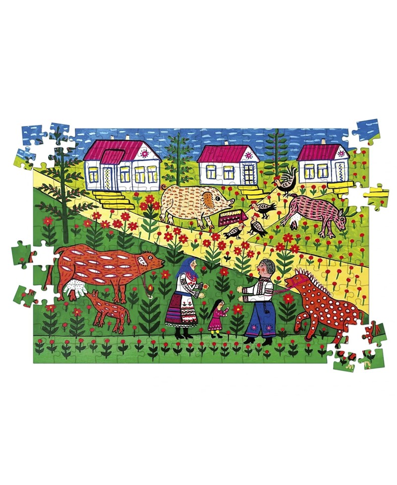 Ее картины – это сочетание ярких красок, фантастических образов и традиционной украинской символики. Собирая этот пазл, вы вместе с ребенком (или даже в одиночку) отправляетесь в волшебное путешествие: от каждого элемента - в мир, где трактор может быть сказочным героем, а солнце – добрым спутником трудолюбивого дня.