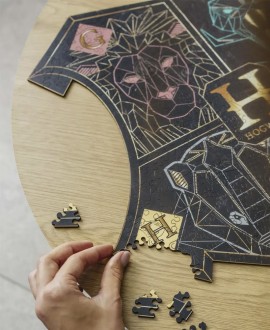 Этот изящный пазл в темном оформлении передает глубину и атмосферу легендарной школы волшебства. Стильный контраст четких форм и глубоких оттенков подчеркивает геральдику четырех факультетов – Гриффиндора, Слизерина, Хаффлпаффа и Рейвенкло.