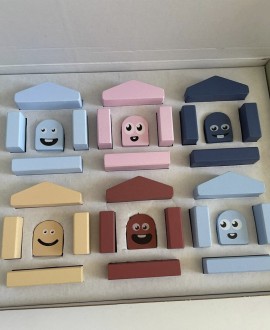 – 24 деревянных блока разной формы и цвета, из которых можно строить дома, башни, пирамиды и множество других конструкций.