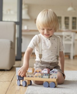 Тягач с машинками – деревянный набор, который захватывает с первого взгляда!