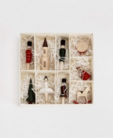 Набор включает 9 знаковых персонажей сказочной истории: грациозная Балерина, отважный Щелкунчик, два Солдатика, хитрая Мышка, праздничная Елка, Лошадка, Барабан и Башня.