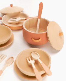 – Социальная адаптация: Парное количество тарелок, ложек, вилок и ножей стимулирует ребенка к игре в компании, развивая воображение и обучая основам гостеприимства.